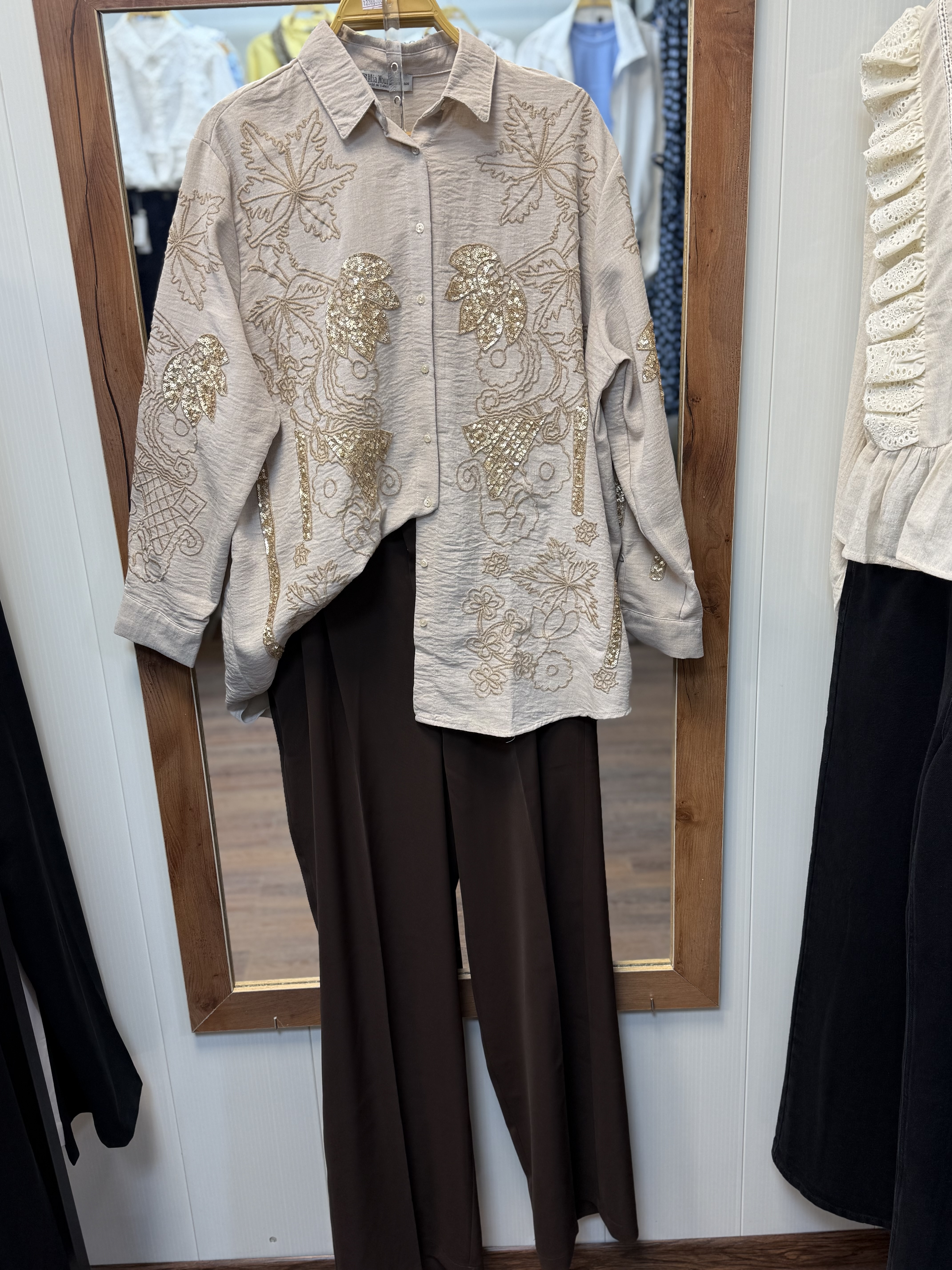 شومیز لینن گلدوزی همراه کمربند